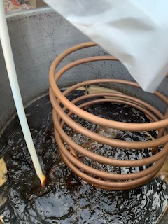 Once the beer reaches the optimal temperature, you need to cool down the beer with the copper chiller and add the final sugars and hops.