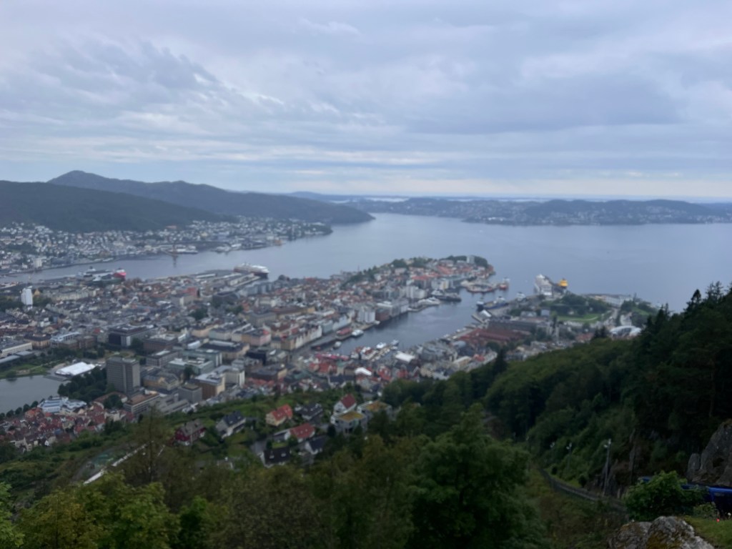 To truly appreciate Bergen’s beauty, take a ride on the Fløibanen Funicular. This scenic ride takes you to the top of Mount Fløyen, offering panoramic views of the city, the surrounding fjords, and the lush landscapes that define the region. At the summit, you can enjoy walking trails, a café, and plenty of spots to take in the stunning vistas. Whether you visit during the day or at sunset, the views from Fløyen are nothing short of spectacular.