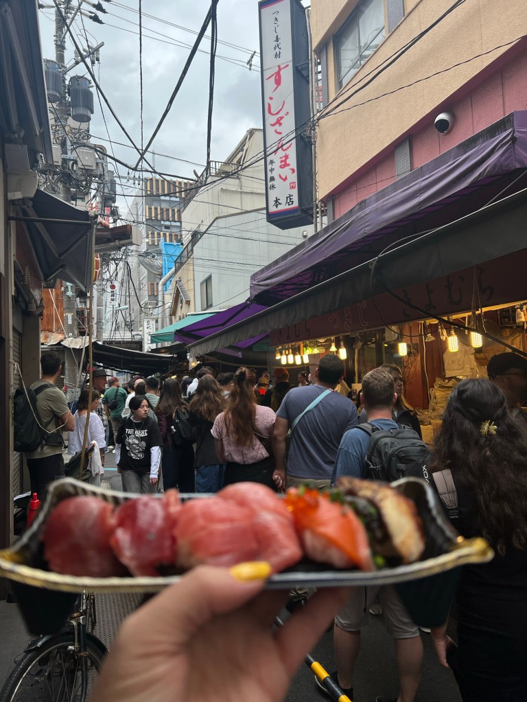 Here’s the thing: Once you eat sushi at Tsukiji, everything else becomes… practice sushi. The fish melts. The rice hugs you emotionally. The chefs smile at you like they know you’re having a life-changing moment.