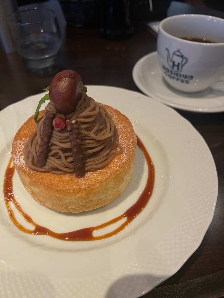 After sushi, we needed dessert because that’s called balance. Enter Hoshino Coffee, home of the famous soufflé pancakes that look like they were summoned by a pastry deity.