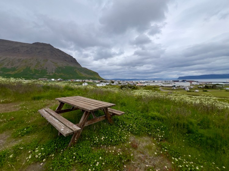 After lunch, I hiked up the town trail, which includes some stairs (and a reminder that I should stretch more) and leads to what feels like the edge of the Earth. Panoramic views of icebergs, the town, and endless fjords—the kind of view that makes you forget to breathe.